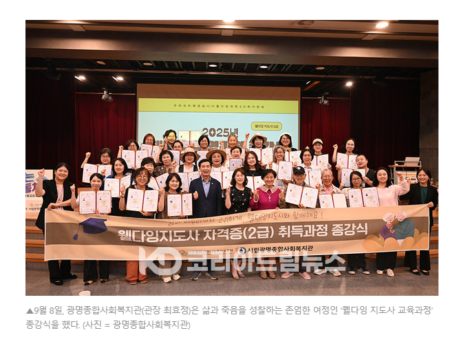 광명종합사회복지관, 죽음을 넘어 삶을 배우는 ‘웰다잉 지도사 교육과정’ 종강 < 광명 < 수도권 < 기사본문 - 코리아드림뉴스