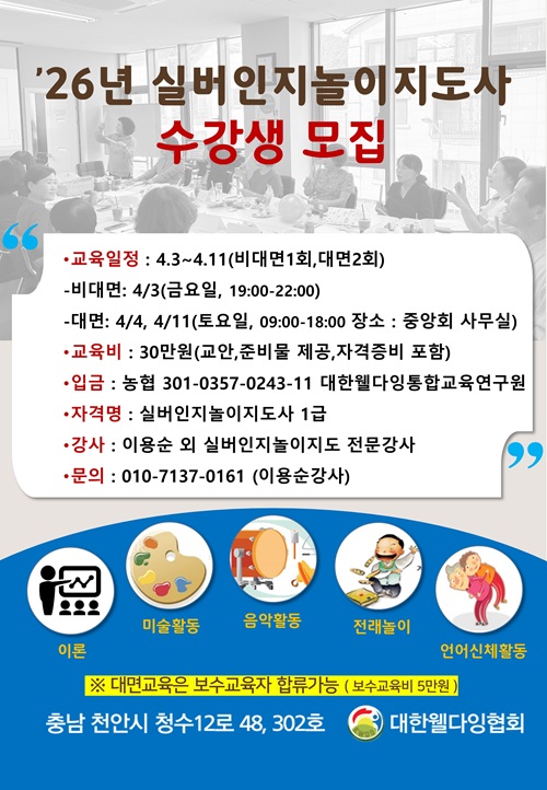 26년 실버인지놀이지도사 수강생을 아래와 같이 모집합니다.