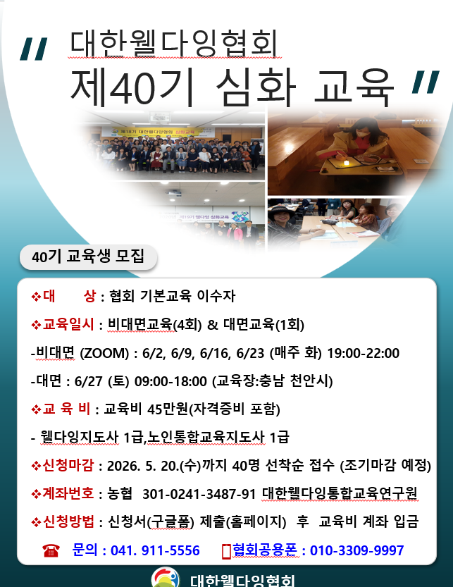 ▣입금계좌: 농협 301-0241-3487-91 대한웰다잉통합교육연구원